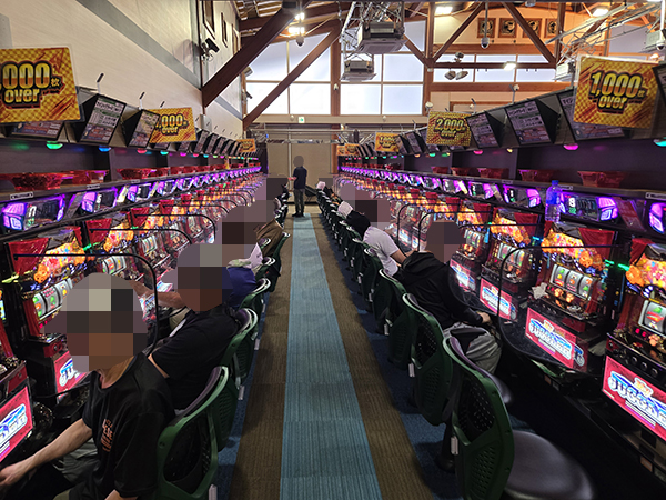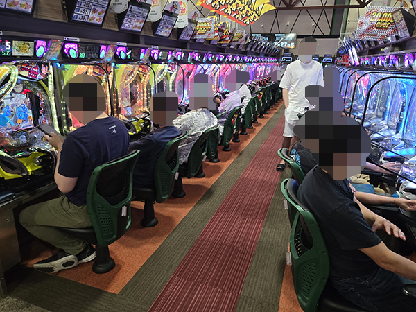 取材時は既に多くのプレイヤーであふれており、パチンコ・パチスロを問わず楽しげな表情でいっぱいだった。