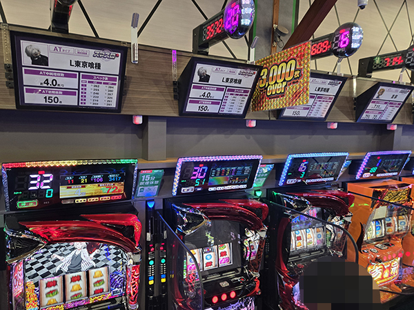 500円/90枚パチスロに目を移すと、嬉しそうにレバーを叩くプレイヤーの姿が至る所で見られた。