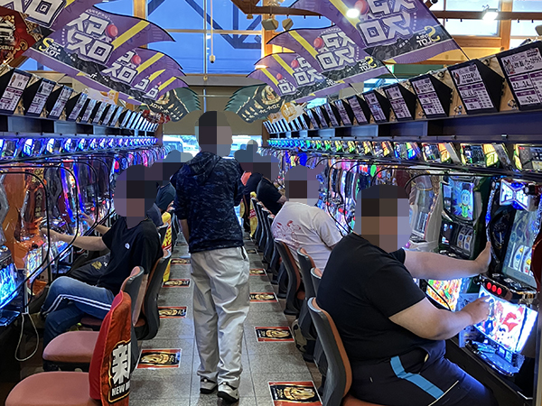 店内には老若男女を問わずプレイヤーが集合。パチンコ・パチスロの各シマから活気が感じられた。