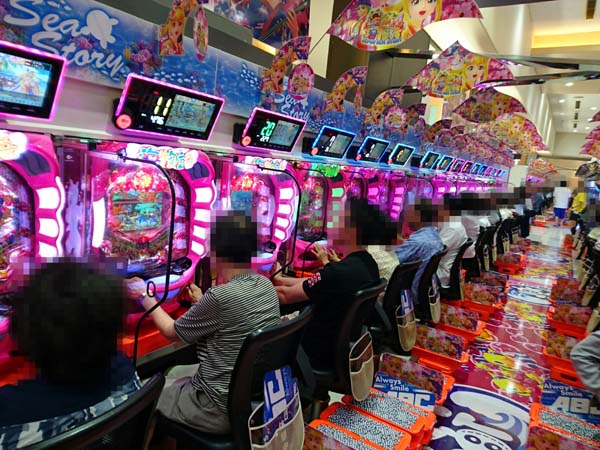 パチンコ、パチスロともに低貸しコーナーも大人気。ほとんど空台が見当たらない状況の中、機種のポテンシャルを存分に発揮するプレイヤーも多数存在。機種の魅力を満喫しているように感じた。