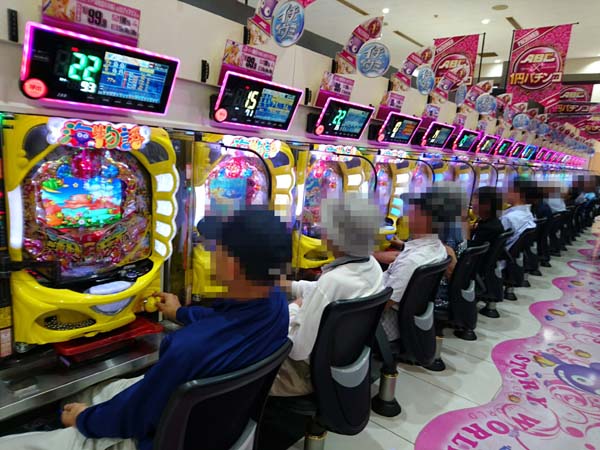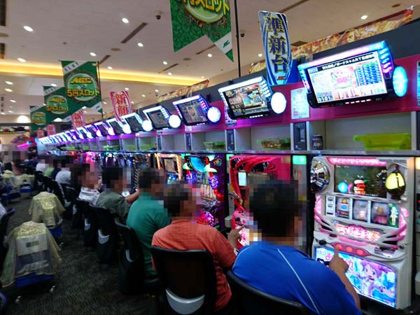 14時を過ぎたころの店内は、パチンコ・パチスロ共に多くのプレイヤーでにぎわい、様々な機種が活気づいていた。