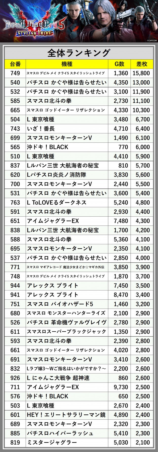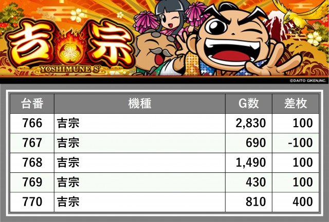 厳選された取材対象機種をはじめ、その他スロット全体から好記録が飛び出した!プレイヤーが楽しんだ1日を下記データにて振り返ってみて欲しい。