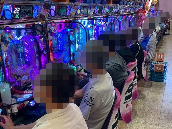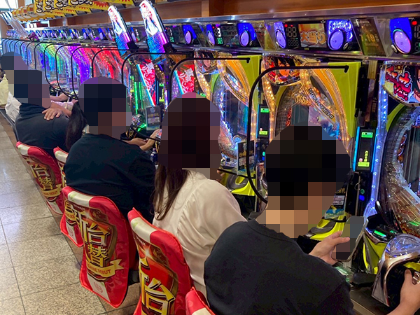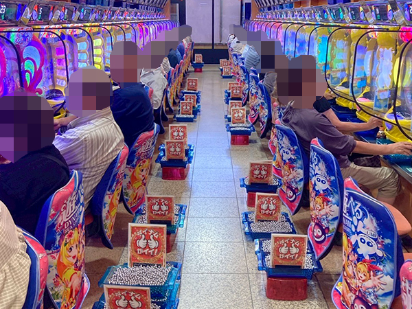 14時半ごろの100円/91玉パチンコでは、「PA大海物語5 Withアグネス・ラム」といった甘海シリーズや、「PAコマコマ倶楽部 with 坂本冬美 ごらくバージョン」などの自社開発機でプレイヤーが華麗なパフォーマンスを披露。微笑ましいシーンを随所で目にしている。
