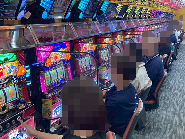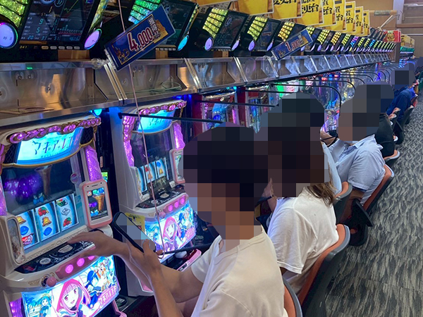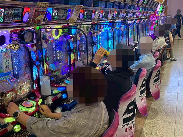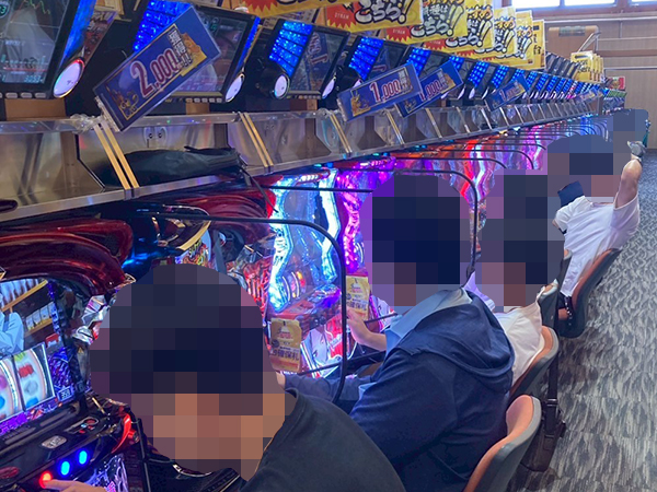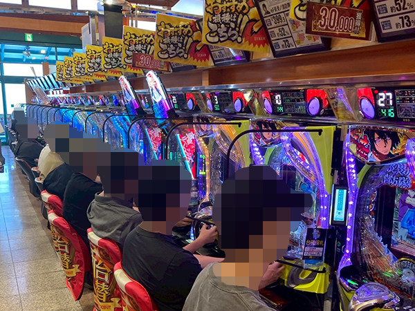 取材時は既に多くのプレイヤーが集結し、パチンコ・パチスロを問わずにぎやかな状況となっていた。