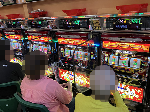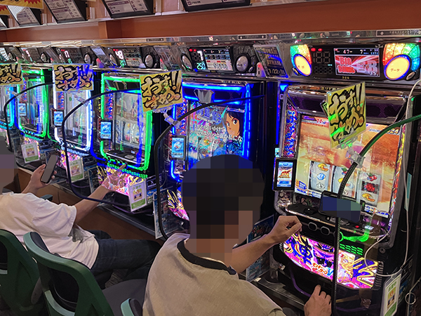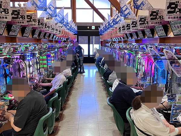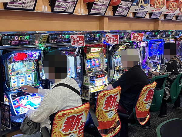 取材時は多くのプレイヤーが来店。パチンコ・パチスロともに、様々な機種が支持を得ていた。