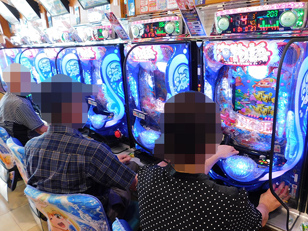 14時半ごろの4円パチンコでは、「e 東京喰種」や「P大海物語5」でプレイヤーが華麗なパフォーマンスを披露。微笑ましいシーンを随所で目にしている。