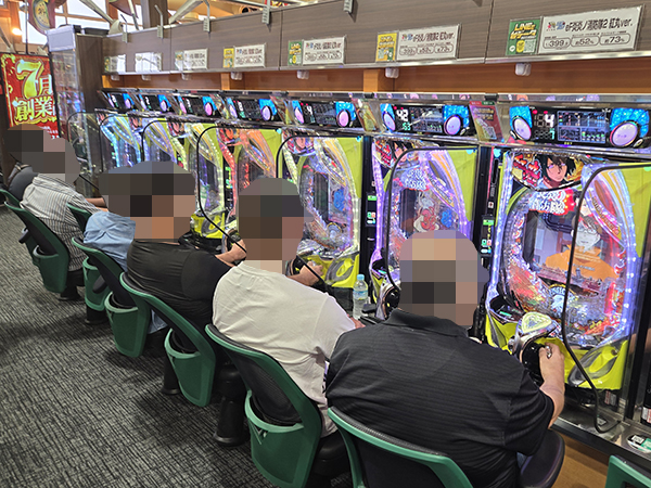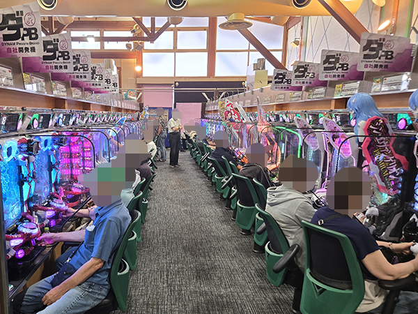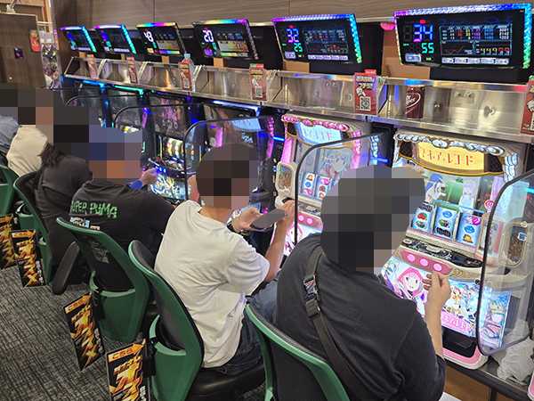 取材時は既に多くのプレイヤーが集結し、パチンコ・パチスロを問わずにぎやかな状況となっていた。