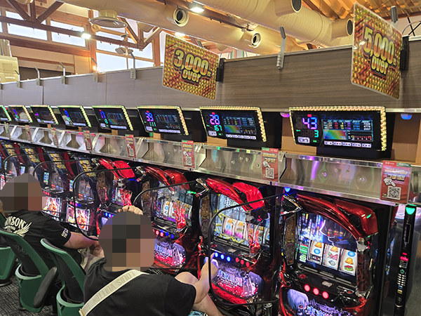 500円/90枚パチスロの稼働も高い。プレイヤーたちが楽しそうにレバーを叩く姿を目撃している。