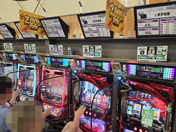 500円/90枚パチスロは全体的に高稼働。空き台が見当たらないほどの盛況ぶりだった。