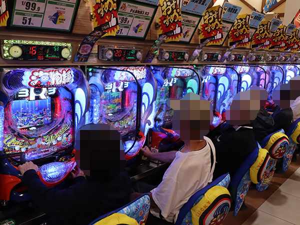 14時半ごろの100円/86玉パチンコでは、「PA海物語3R3」や「PA海物語3R2」といった海物語シリーズでプレイヤーが華麗なパフォーマンスを披露。微笑ましいシーンを随所で目にしている。