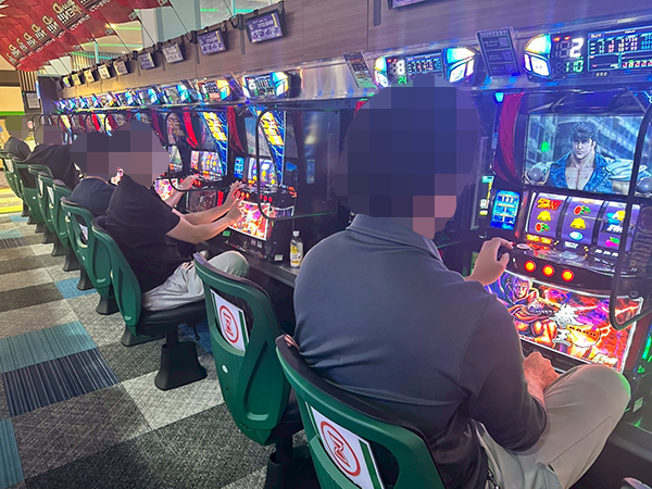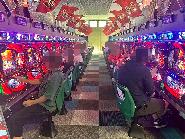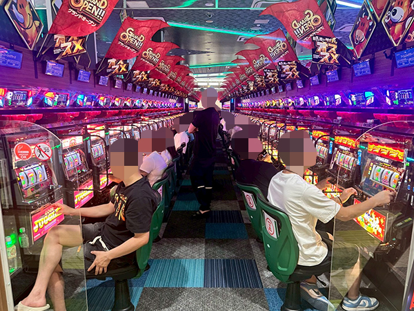 取材時は既に多くのプレイヤーが集結し、パチンコ・パチスロを問わずにぎやかな状況となっていた。
