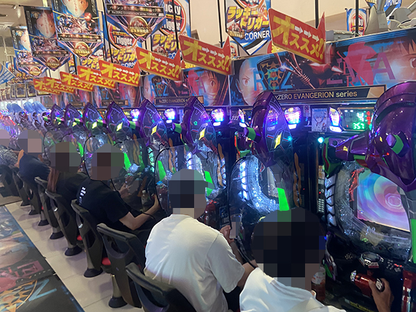 午後の4円パチンコを見てみると「新世紀エヴァンゲリオン〜未来への咆哮〜」や「ぱちんこ シン・エヴァンゲリオン Type レイ」、「e Re:ゼロから始める異世界生活 season2」が盛況の様子。機種のポテンシャルを上手く発揮するプレイヤーを多数確認している。