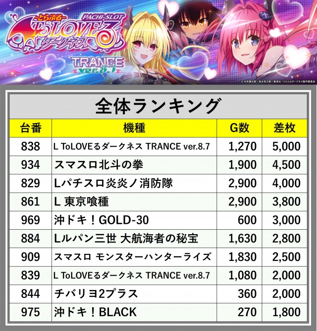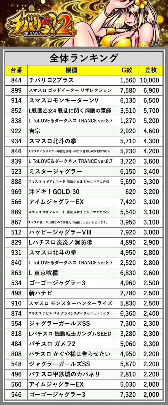 厳選された取材対象機種をはじめ、その他スロット全体から好記録が飛び出した!プレイヤーが楽しんだ1日を下記データにて振り返ってみて欲しい。