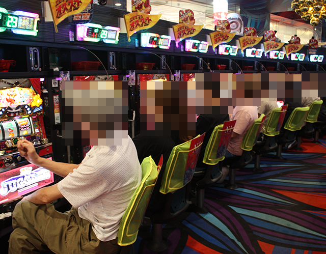 ジャグラーシリーズもにぎわっており、「マイジャグラーⅤ」などに楽しそうな姿が並んでいた。