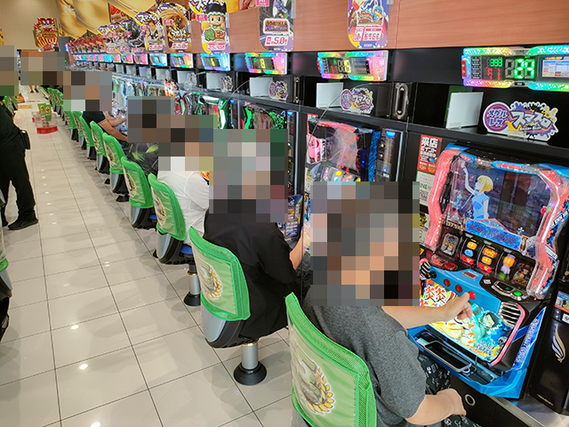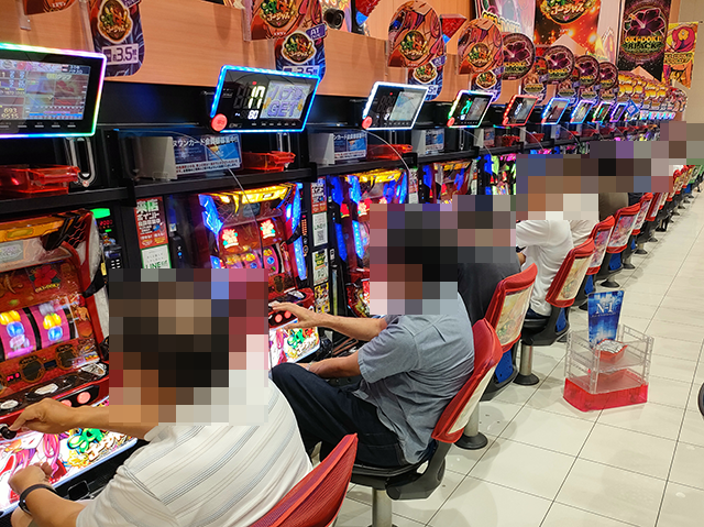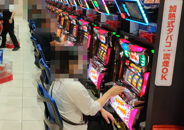 「沖ドキ!ゴージャス-30」と「沖ドキ!BLACK」に空き台はなく、プレイヤーたちは持ち玉を使って遊技をおこなっていた。