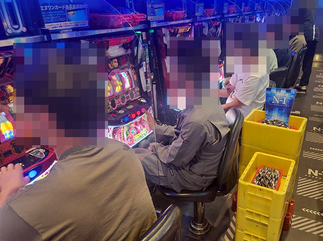 パチスロコーナーをまわっていると、スマスロでプレイヤーたちの笑顔がみられた。