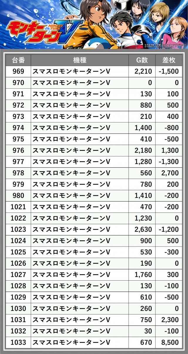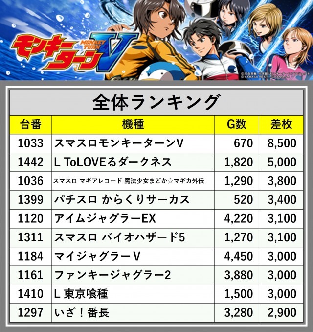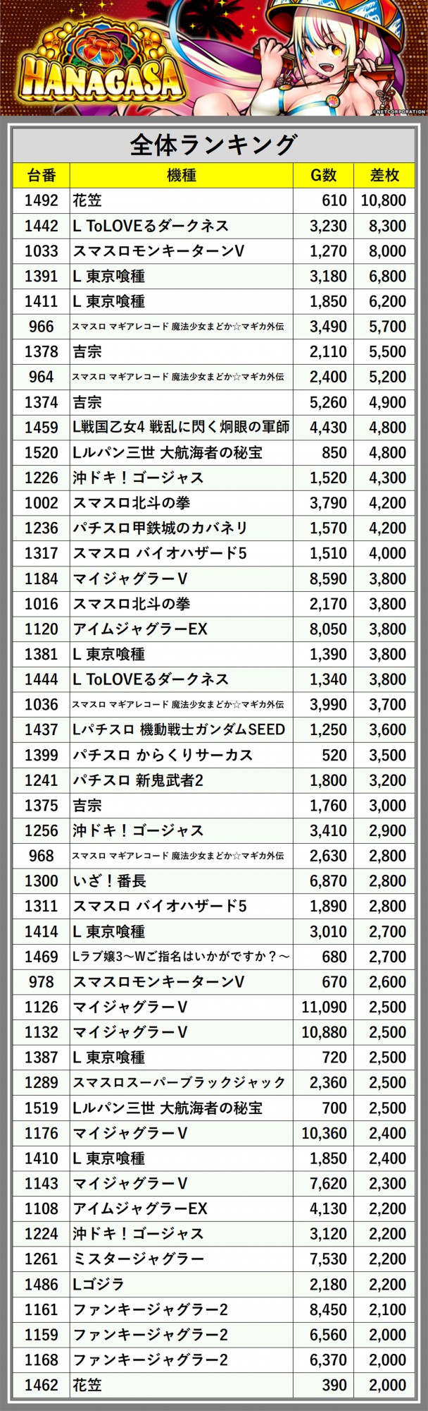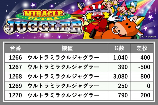 厳選された取材対象機種をはじめ、その他スロット全体から好記録が飛び出した!プレイヤーが楽しんだ1日を下記データにて振り返ってみて欲しい。