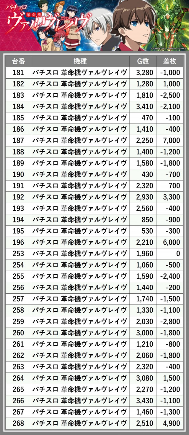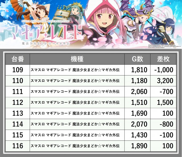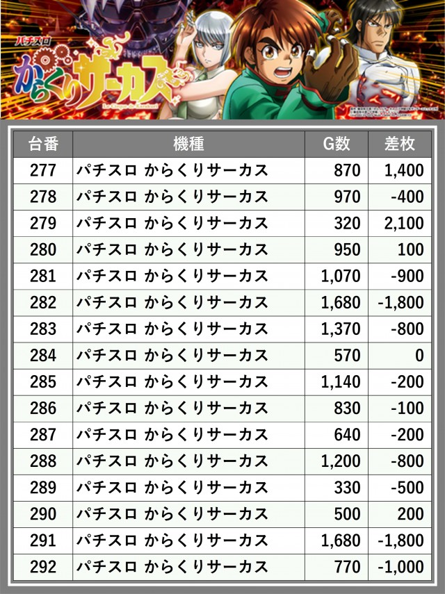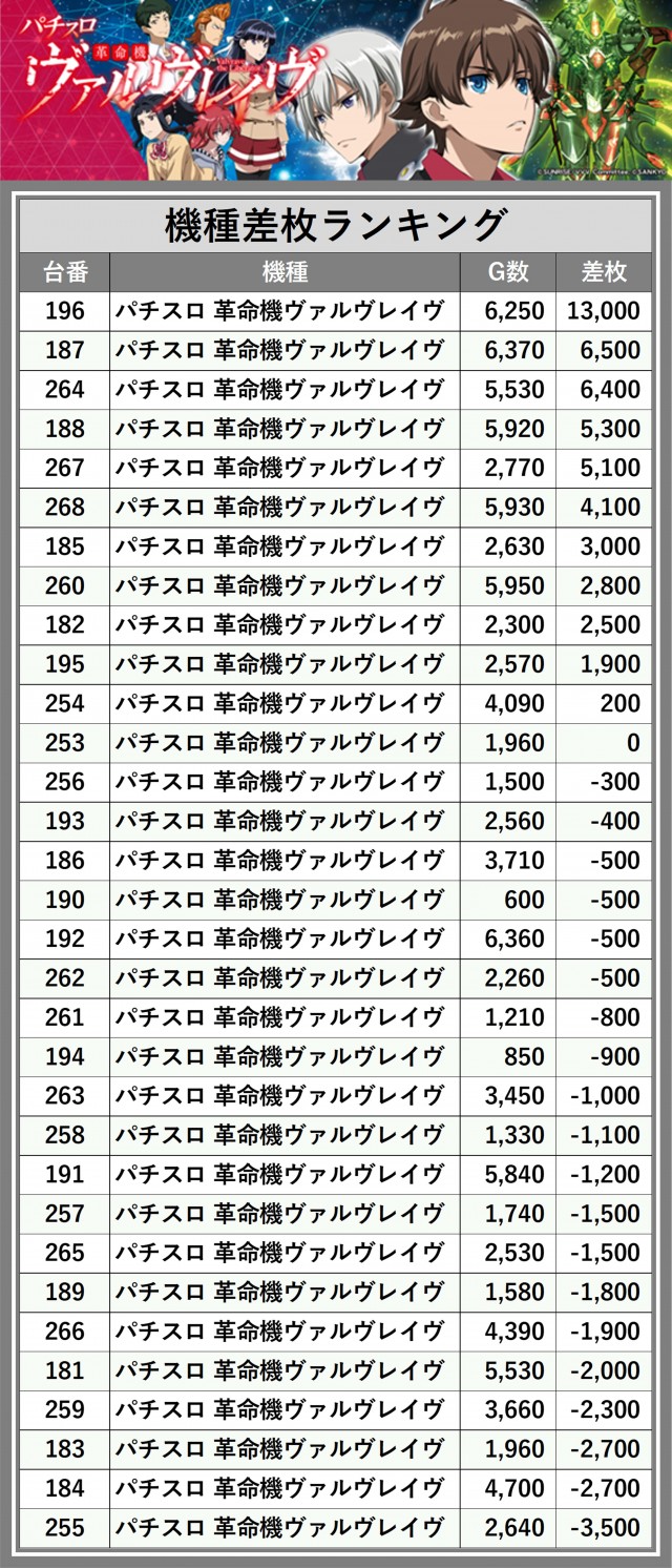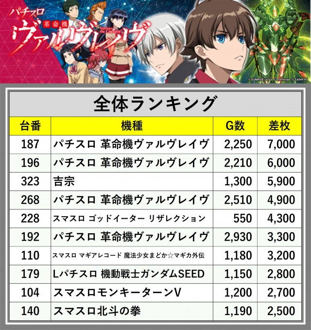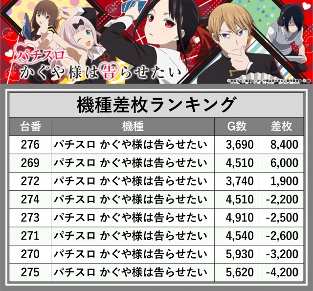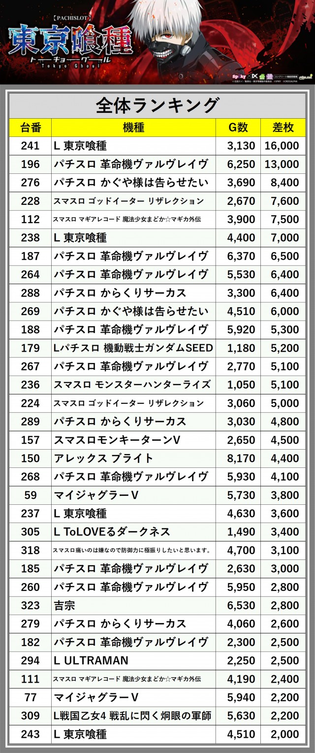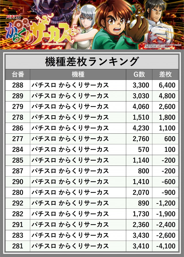 ※差枚数順に掲載しています