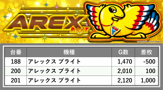 厳選された取材対象機種をはじめ、その他スロット全体から好記録が飛び出した!プレイヤーが楽しんだ1日を下記データにて振り返ってみて欲しい。