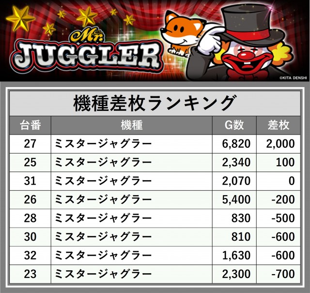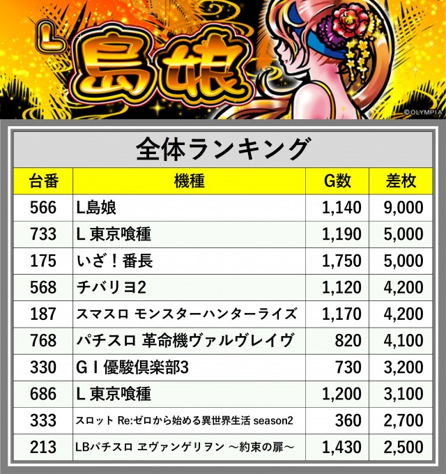 厳選された取材対象機種をはじめ、その他スロット全体から好記録が飛び出した!プレイヤーが楽しんだ1日を下記データにて振り返ってみて欲しい。
