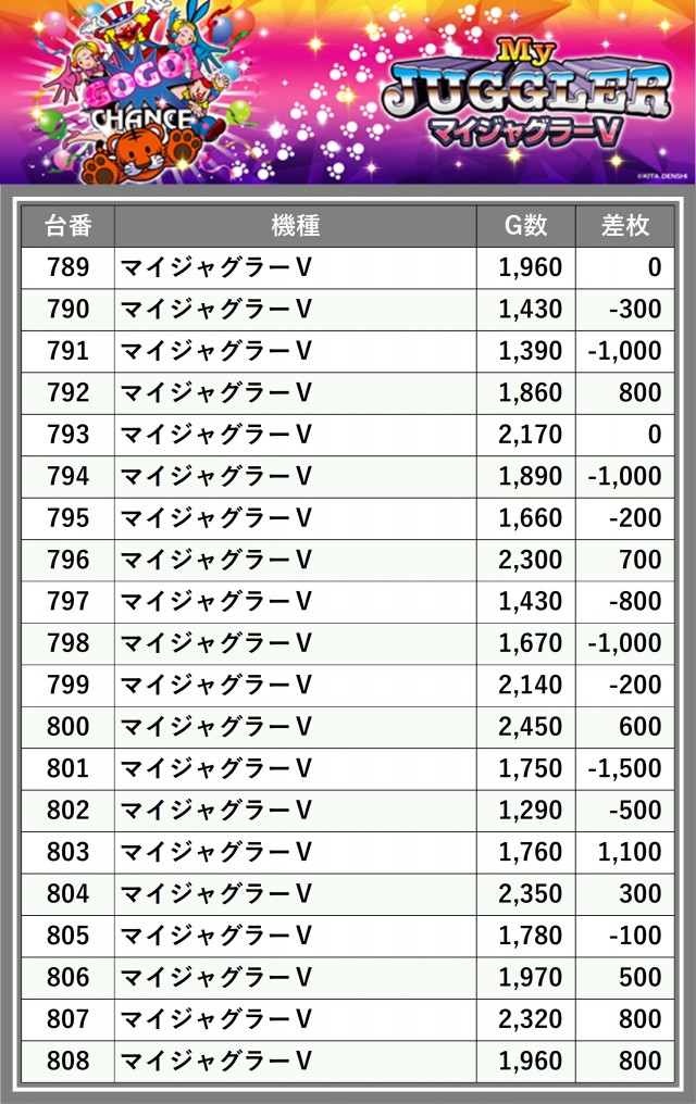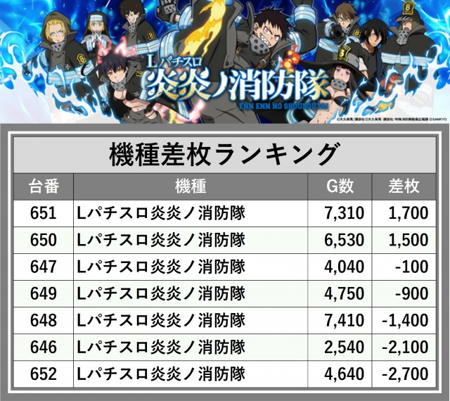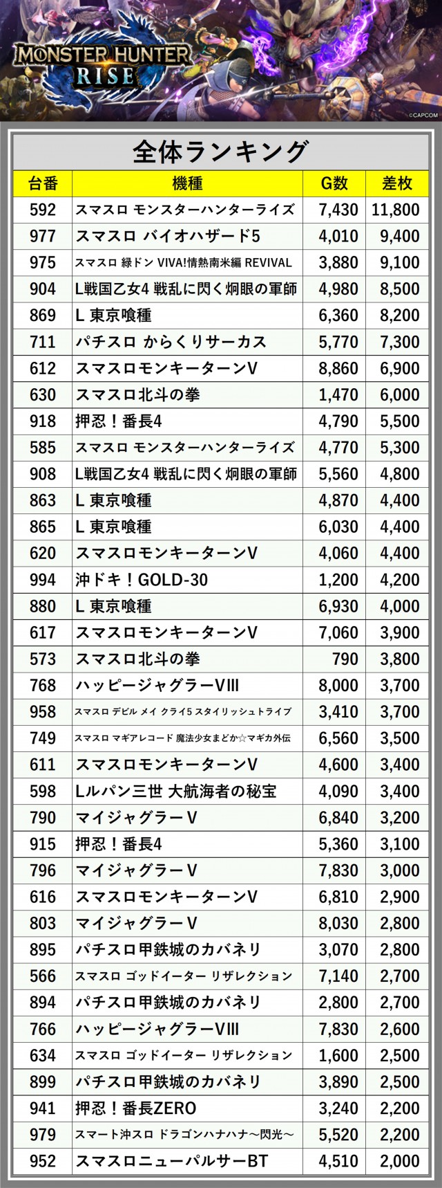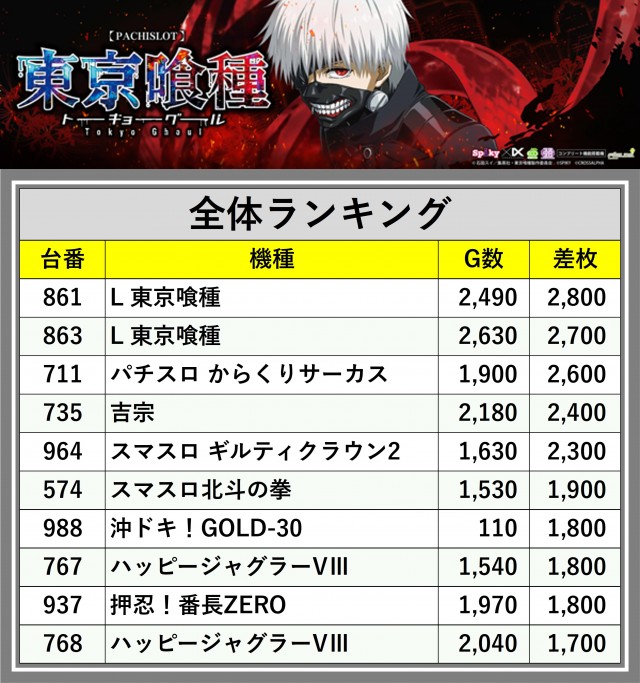 ※差枚数順に掲載しています