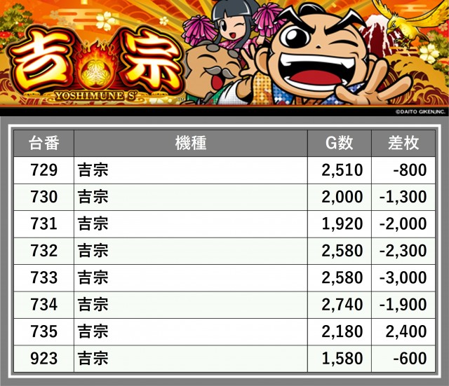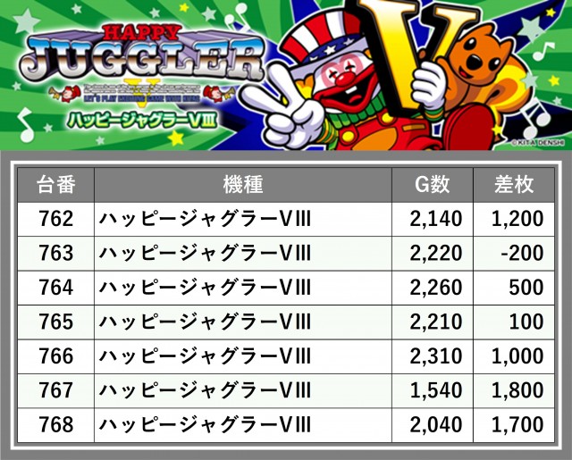 厳選された取材対象機種をはじめ、その他スロット全体から好記録が飛び出した!プレイヤーが楽しんだ1日を下記データにて振り返ってみて欲しい。