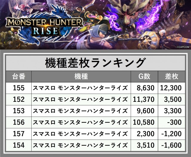 厳選された取材対象機種をはじめ、その他スロット全体から好記録が飛び出した!プレイヤーが楽しんだ1日を下記データにて振り返ってみて欲しい。