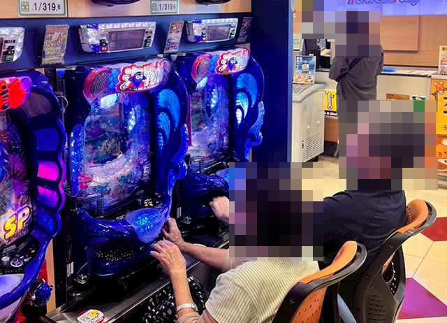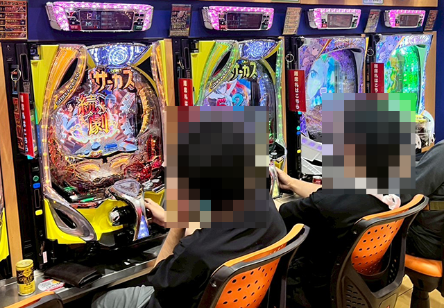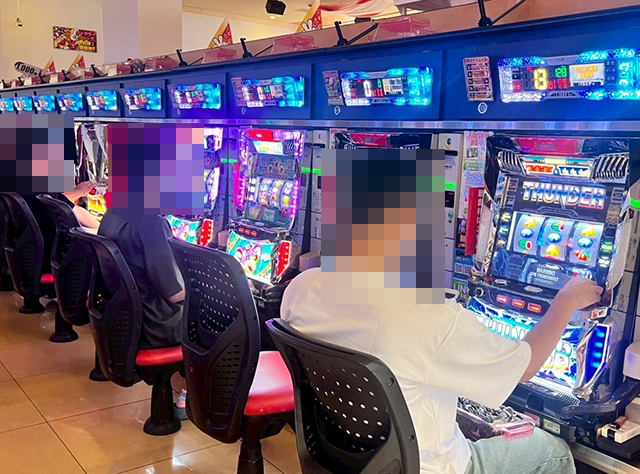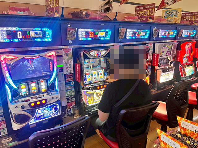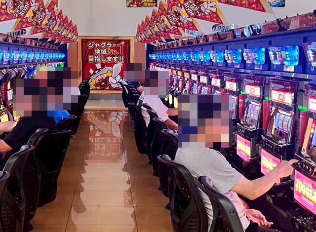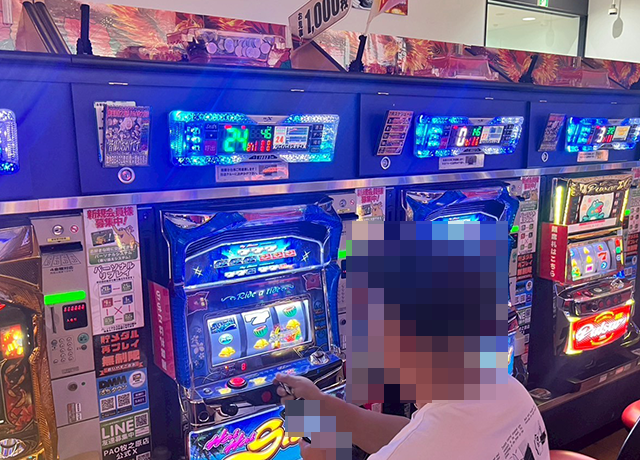 「アイムジャグラーEX」と「ゴーゴージャグラー3」の両方に、1箱以上の持ち玉で遊技をおこなっている姿があった。