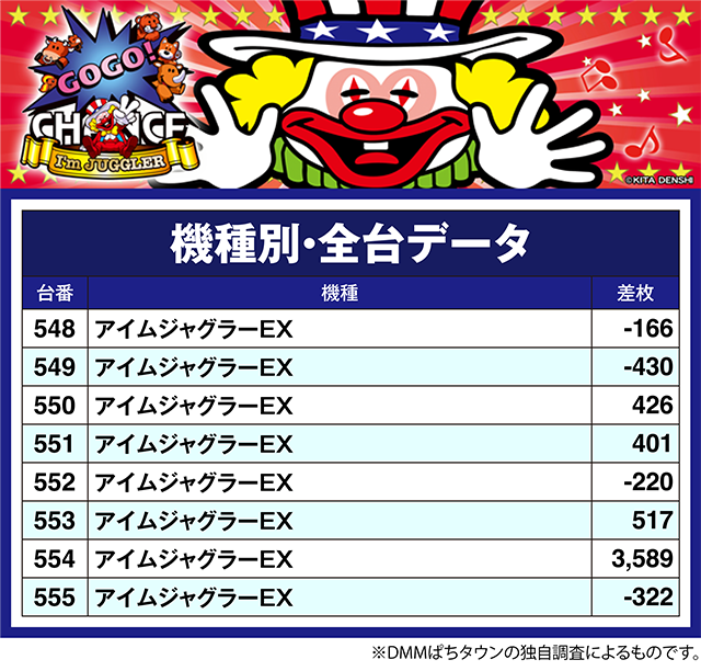 「アイムジャグラーEX」の554番台が3,500ptオーバー!!