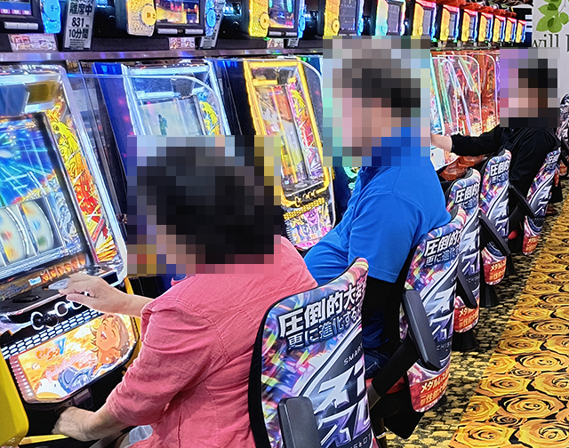 7月23日、静岡県伊東市にある「ハッピーアシベ」へと向かった。今回の取材は、「アルティメットスロット」だ。パチスロをみると、最新機種から定番のシリーズ機まで、さまざまな機種に活躍をしている姿があった。