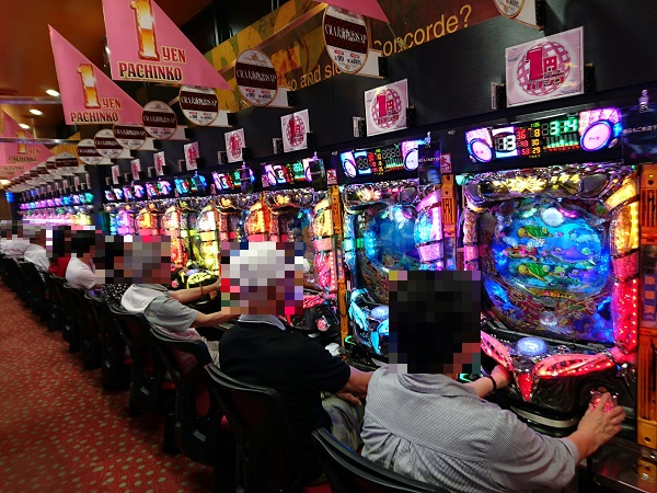 1円パチンコで圧倒的な支持を得ているのは海物語シリーズ。機種、スペックを問わず常連プレイヤーが楽しんでおり、笑顔で有意義な時間を過ごせているようであった。