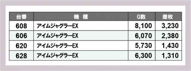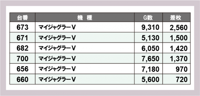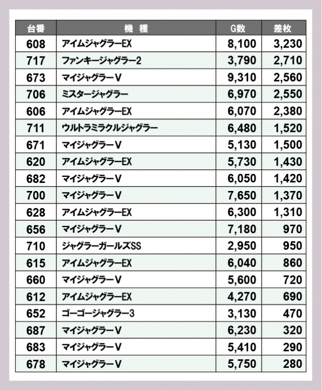 ※差枚数順に掲載しています
