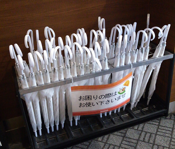傘の貸し出しがおこなわれているため、取材日のような悪天候でも安心できると思えた。