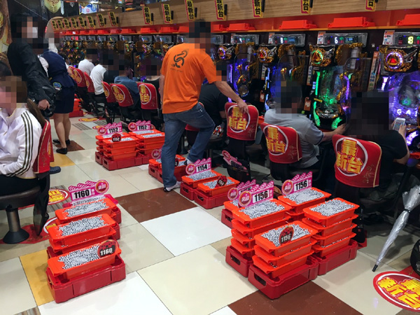 4円パチンコでは、新台の「CR牙狼 GOLDSTORM翔」が大盛況。機種のポテンシャルを引き出しているプレイヤーが数多く見られ、羨むような光景が広がっていた。