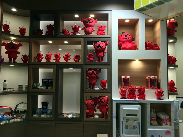 同グループの公式マスコット「ヤバイラー」が大量に飾られている景品コーナーは圧巻。