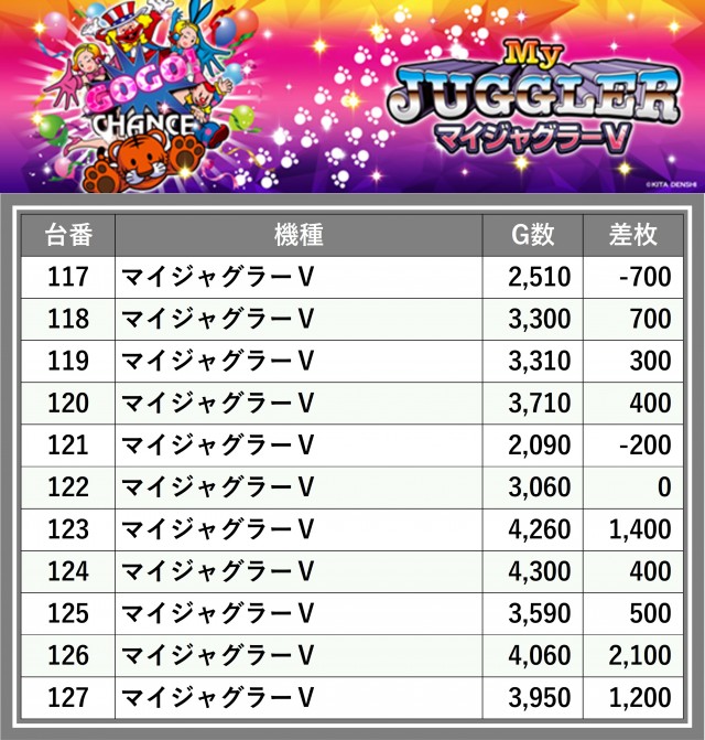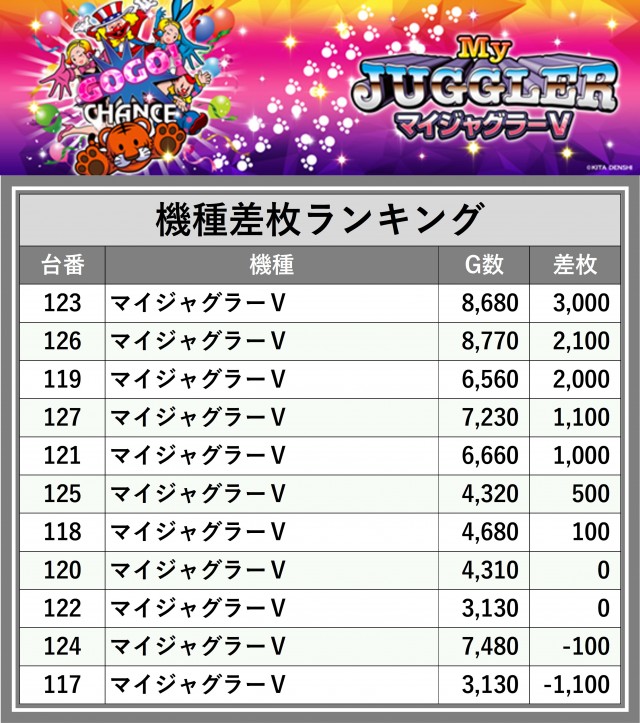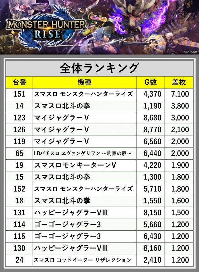 厳選された取材対象機種をはじめ、その他スロット全体から好記録が飛び出した!プレイヤーが楽しんだ1日を下記データにて振り返ってみて欲しい。