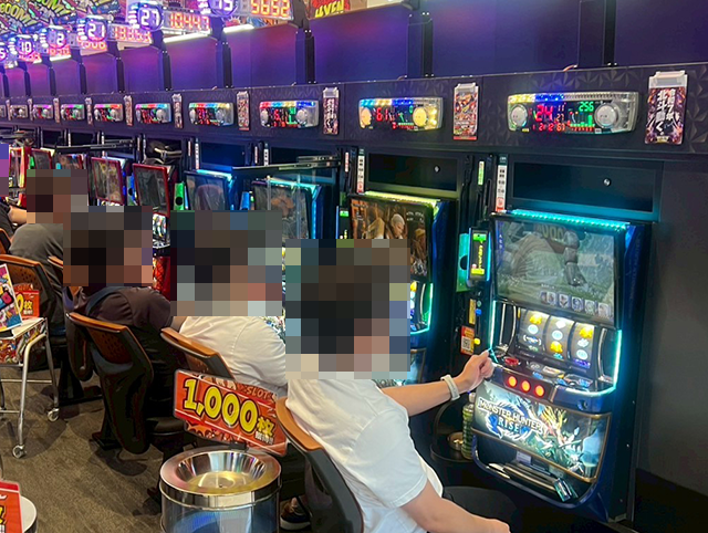 17時を過ぎた時点で、「スマスロ モンスターハンターライズ」が満席に近く、すでに10,000ptを超えている台があった。