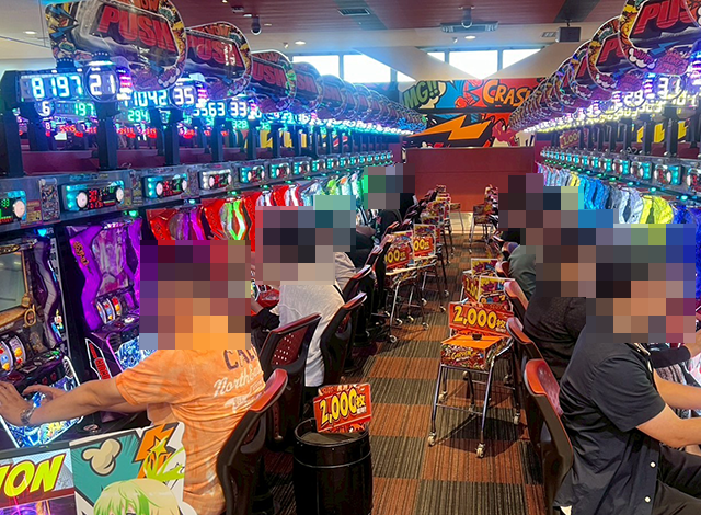 パチンコをみると、「デカスタe花の慶次~傾奇一転」や「eフィーバー炎炎ノ消防隊2 紅丸ver.」などのスマパチから明るい雰囲気が感じられた。