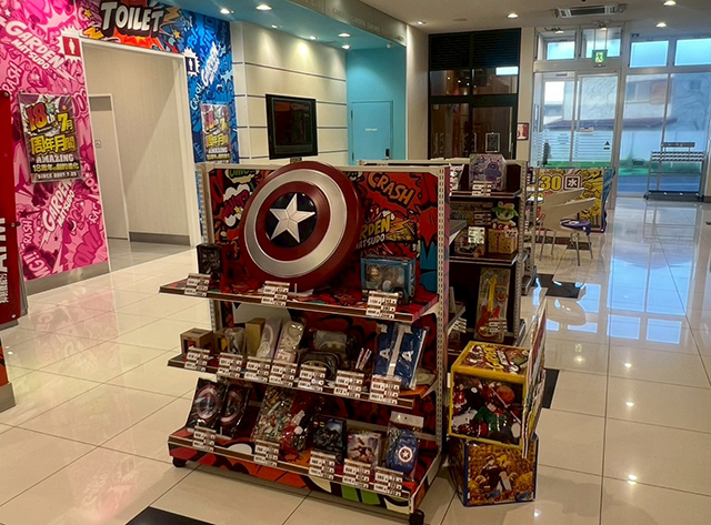 賞品コーナーに、さまざまなアメコミのグッズが並んでいるなど、賞品のラインナップにも目をひかれた。