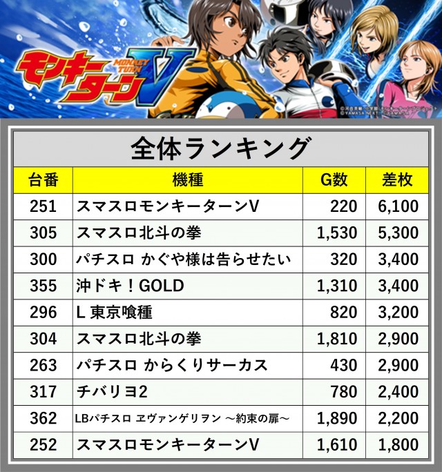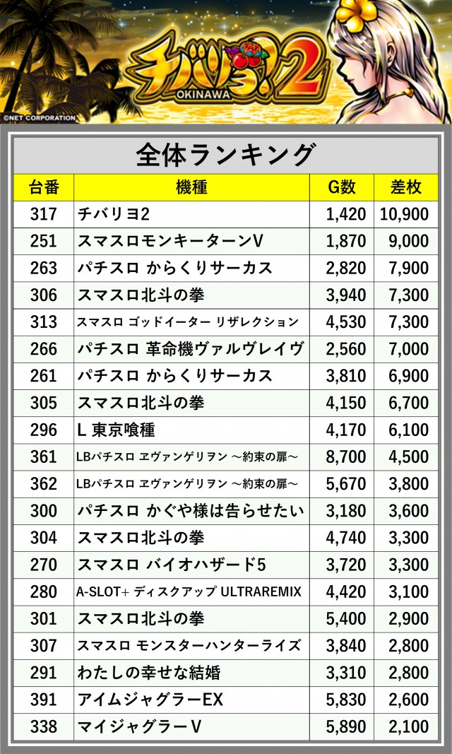厳選された取材対象機種をはじめ、その他スロット全体から好記録が飛び出した!プレイヤーが楽しんだ1日を下記データにて振り返ってみて欲しい。