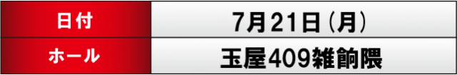 7月21日、『玉屋409雑餉隈』にて「たまピー来店取材」が実施された。前回の一戦においては2台の万枚OVER台が存在するなど、大きな盛り上がりを披露していたため、求められるのは同等以上の内容だろうか。果たしてどのような1日になったのか…さっそく詳細データとともに、店内の様子を振り返っていこう!
