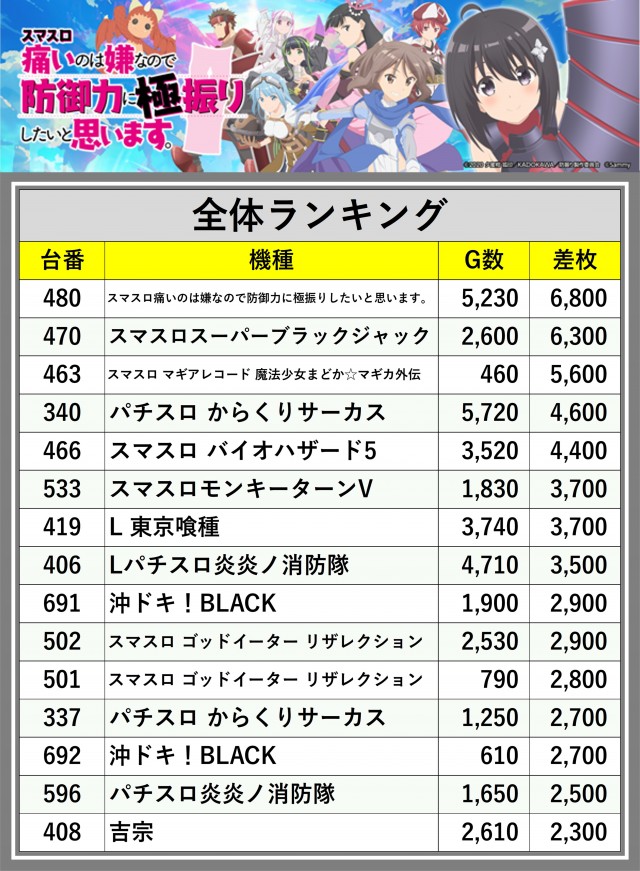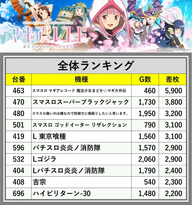 厳選された取材対象機種をはじめ、その他スロット全体から好記録が飛び出した!プレイヤーが楽しんだ1日を下記データにて振り返ってみて欲しい。