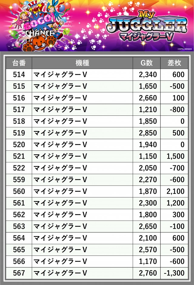 厳選された取材対象機種をはじめ、その他スロット全体から好記録が飛び出した!プレイヤーが楽しんだ1日を下記データにて振り返ってみて欲しい。