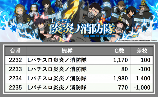 ※台番順に掲載しています