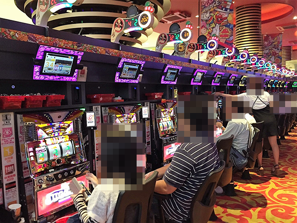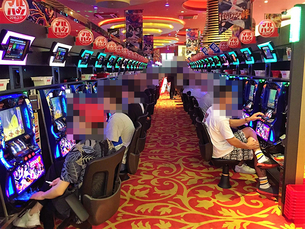 「パチスロガールフレンド(仮)~聖櫻学園メモリアル~」をはじめとした5円パチスロで遊技を楽しむ姿もみられ、シマ全体に魅力的な光景が広がっていた。