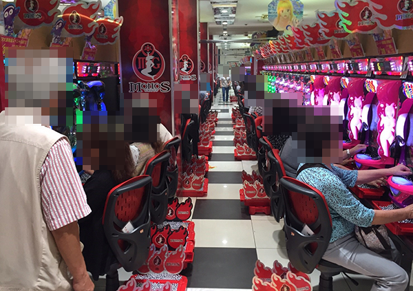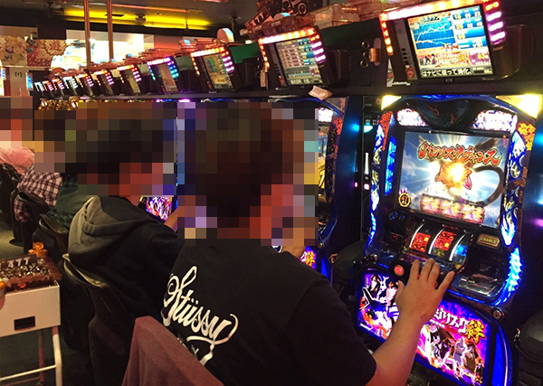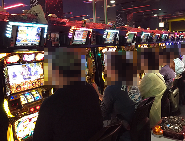 パチスロの状況をうかがうと、「ミリオンゴッド-神々の凱旋-」と「バジリスク~甲賀忍法帖~絆」に、華やかな光景が広がっていた。