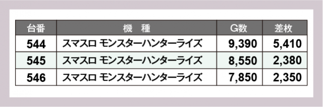 ※差枚数順に掲載しています