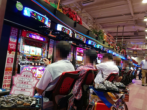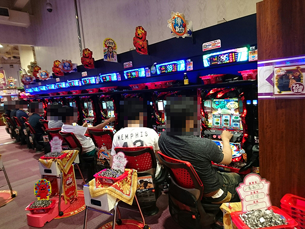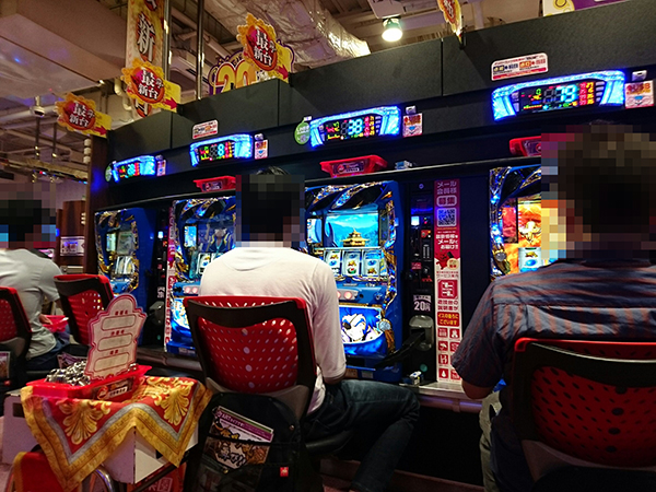 午前は「バジリスク~甲賀忍法帖~絆」や「押忍!番長3」が満台と高い稼働率を維持していた。