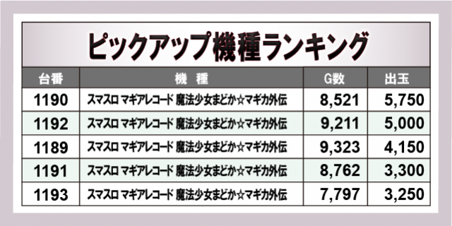 ※出玉数順に掲載しています