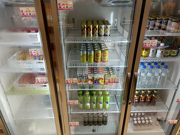 景品コーナーにはドリンク類やアイスなど多彩なアイテムが並んでおり、プレイヤーたちの興味を引いていた。